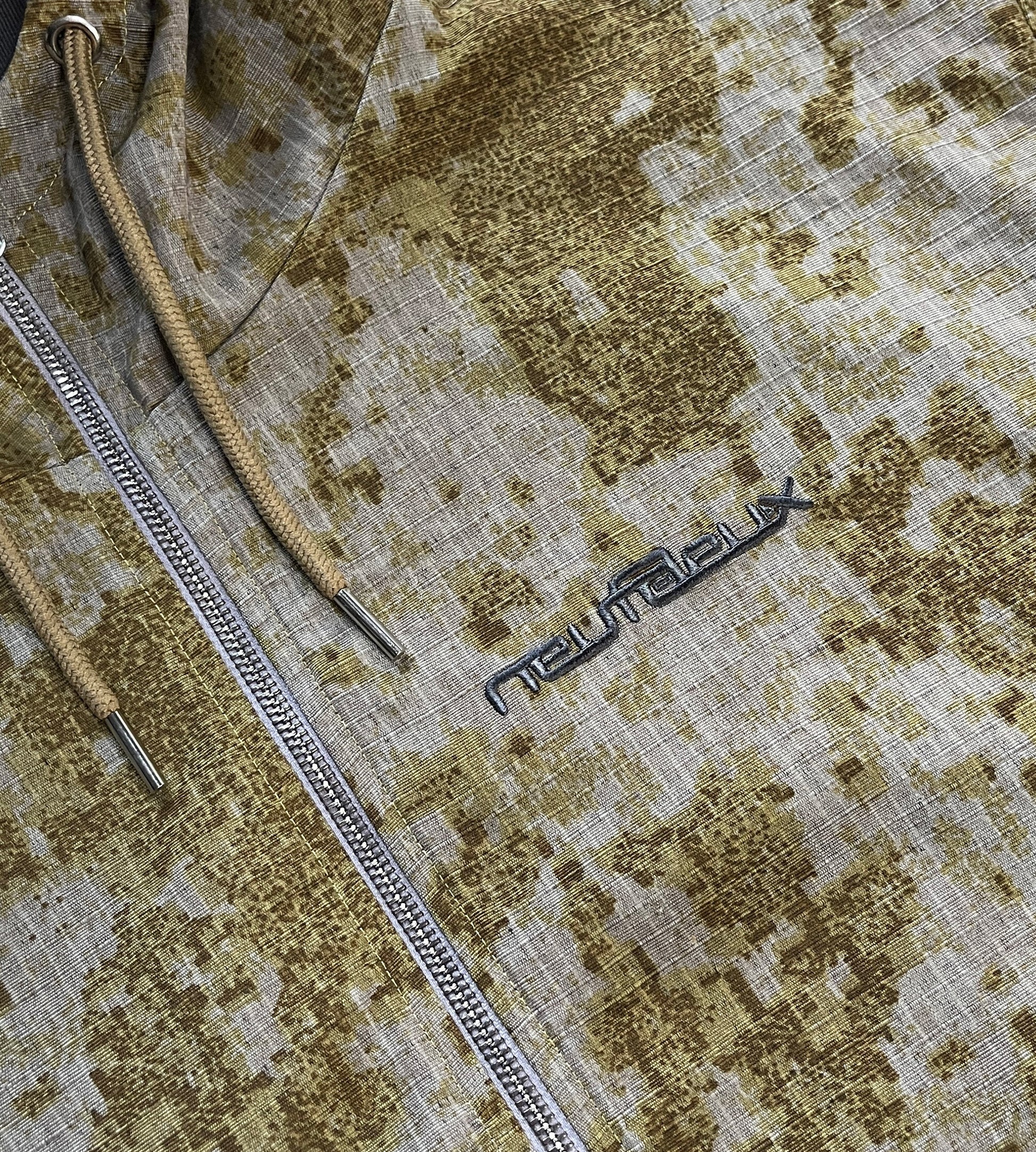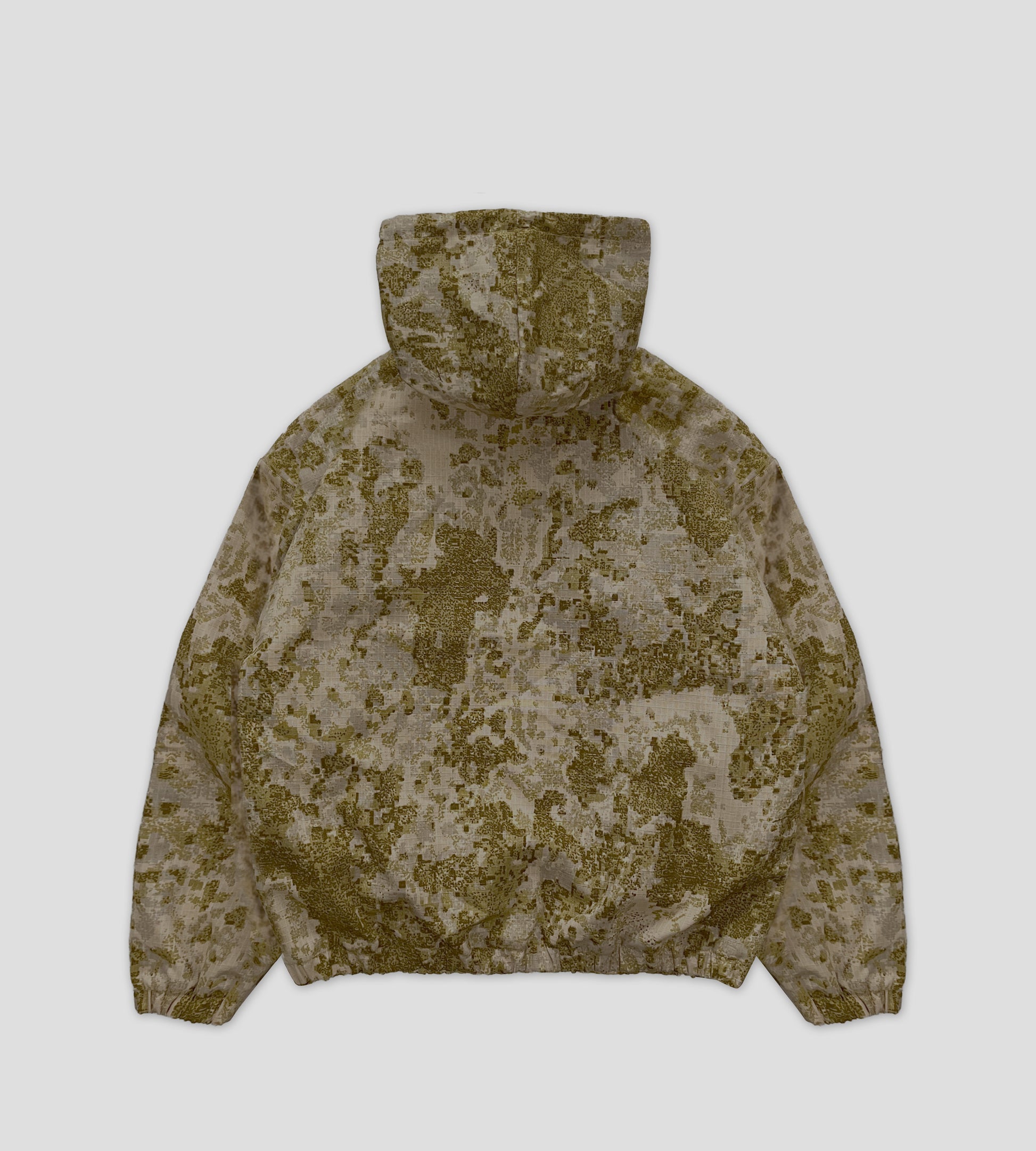 Reversible - Ripstop Camo Jacket on one side, heavy gsm soft-touch hoodie on the other side.